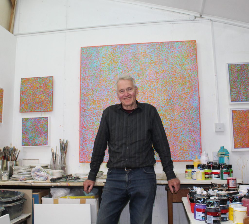 With roots in Merseyside, Jones studied painting at Bristol before settling in West Berkshire. His studio at Foxbury Farm, which he has occupied for over twenty years, overlooks the Lambourn Downs and contains a large body of work, from earlier landscapes and figure painting to his return to abstraction and interest in colour.